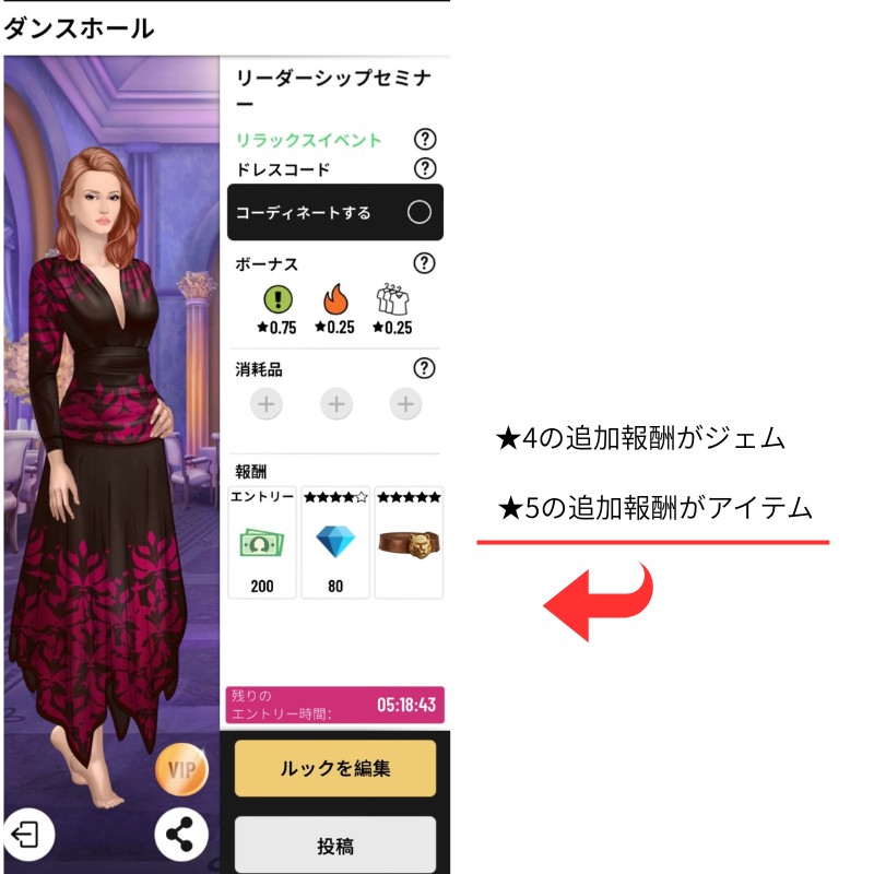 星4以上になるとジェムが追加報酬でもらえるので、できるだけ星4を目指しましょう。