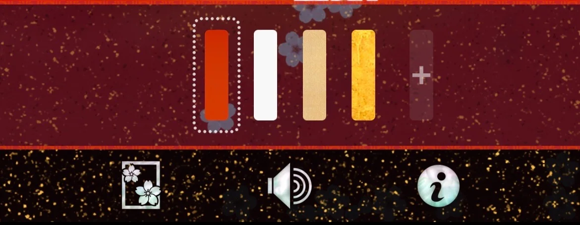画面右下をタップすると和柄の枠が出るので、そのまま枠内を斜めになぞると金魚のエサを出すことができます。